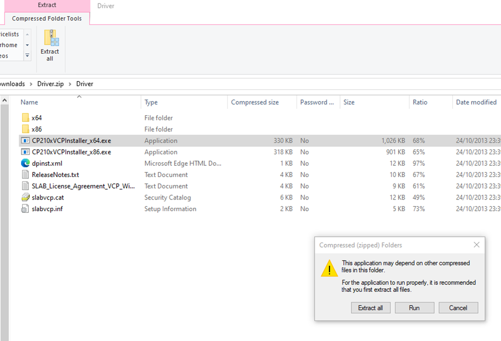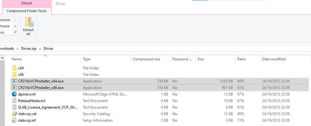 Once this file is open you will find 2 drivers labelled CP210xVCPInstaller.