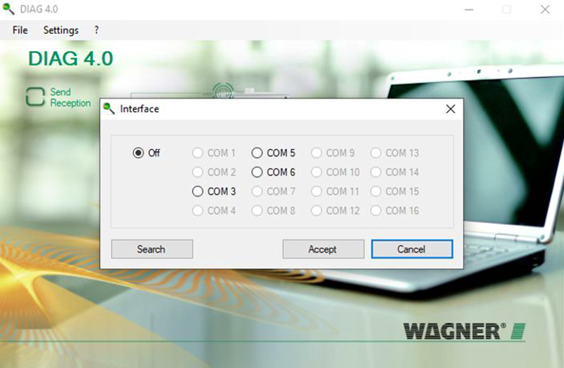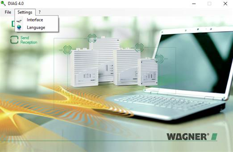 Figure 3 - Settings / Interface options In the image above you will also see the interface option, if communication with the Wagner aspirator is not