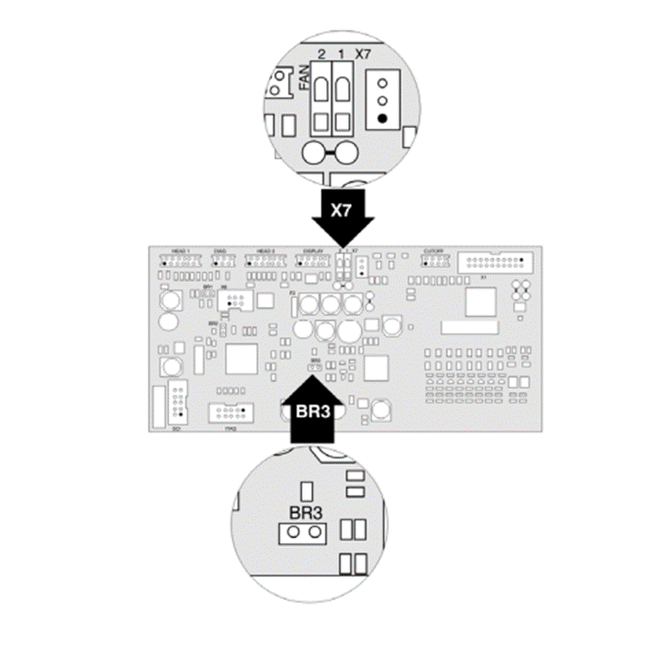 The voltage can be switched from 6.9v to 9v by removing BR3 in order to increase the transport speed in the pipe system and thus to guarantee a quicker detection in case of greater pipe lengths.